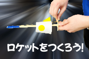 紙工作で輪ゴムの力で飛ばすロケットをつくり、最後にはみんなで飛距離を比べてみましょう!