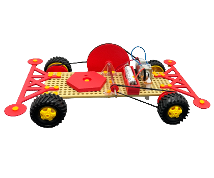 モーターとプーリーを組み合わせて、”遅く走る車”を作ります。